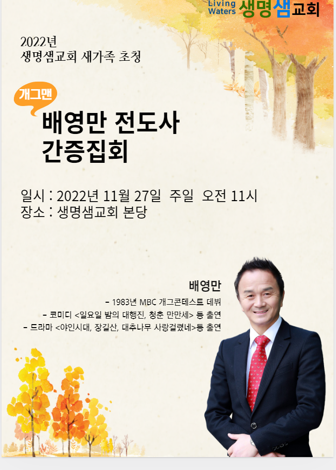 - 장소 : 생명샘교회 본당