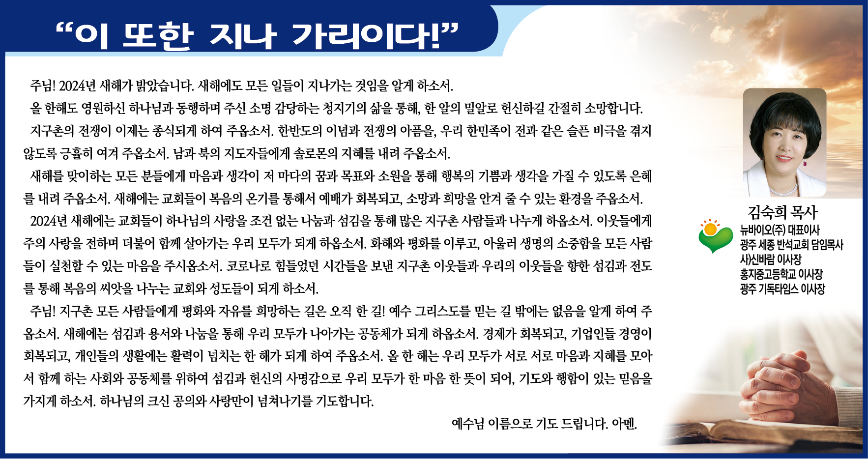 | [새해 기도문] 이 또한 지나 가리이다! (0) | 2024.01.11 |
