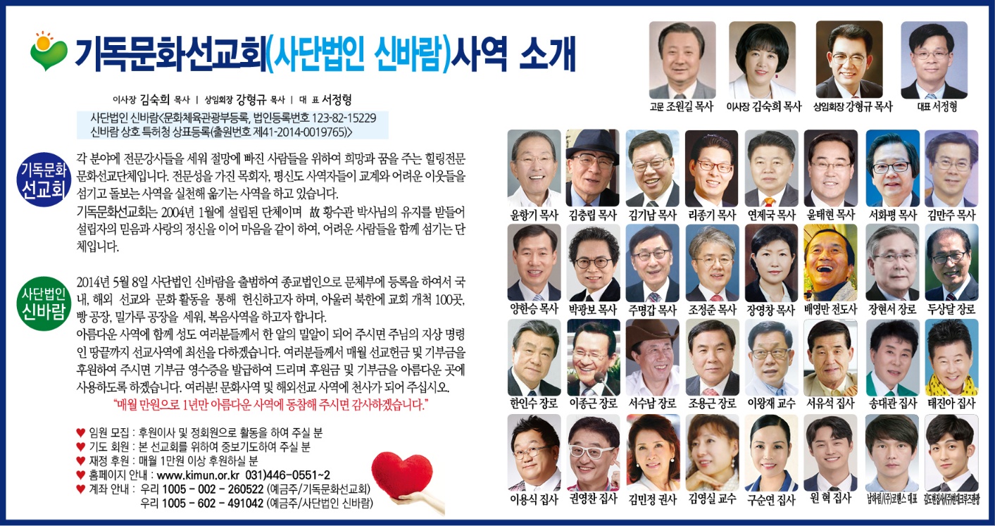 | 사)기독문화선교회 강사진 (0) | 2024.04.15 |