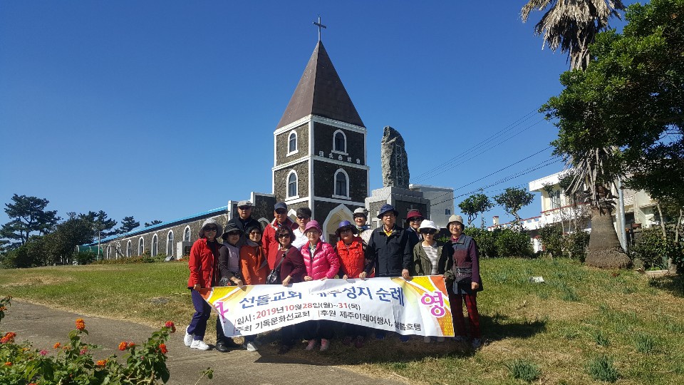 제주선교 117년을 맞이하여 초기 선교사들의 발자취와 초창기 목회자들의 순교지 및 성지 방문 여행 상품을 기독문화선교회( 이사장 김숙희 목사 상임회장 강형규 목사 대표 서정형)는 제주 (주)샬롬호텔 , 제주이레여행사와 함께 2박3일 일정의 제주성지순례 일정을 준비 하였다.