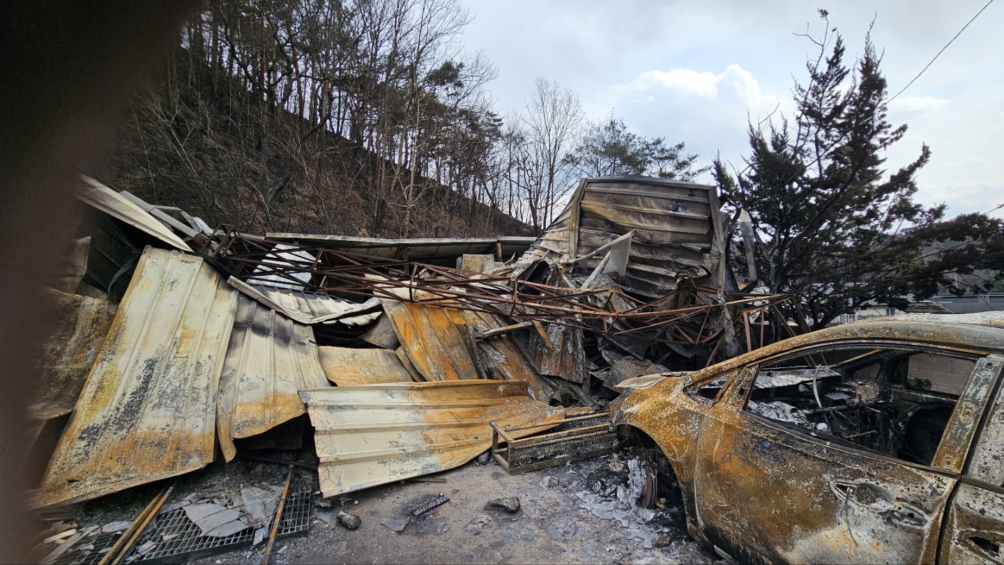 청송 목계교회 산불로 피해를 당한 현장 모습.