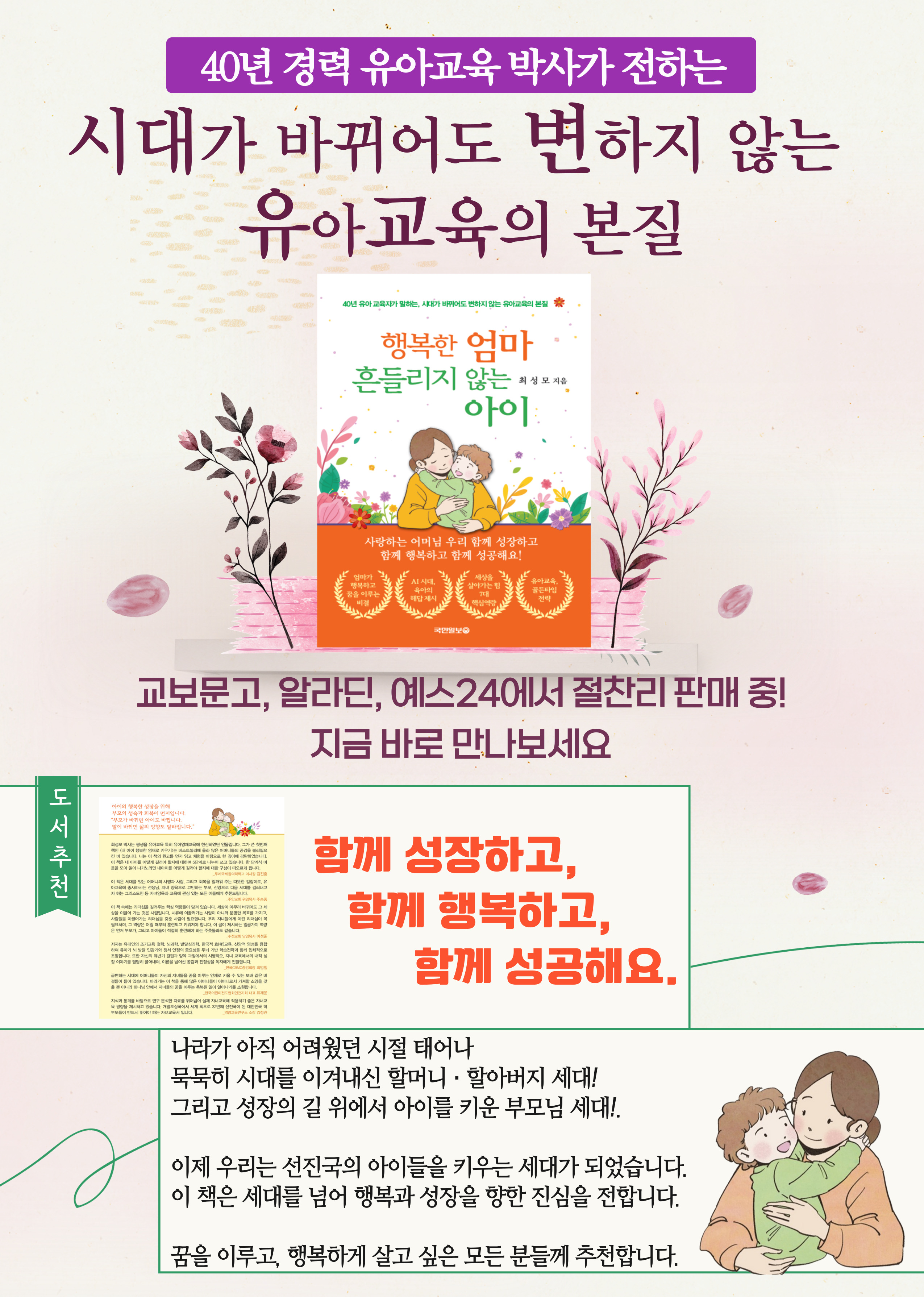 40년경력 유아교육 박사가 전하는 "행복한 엄마 흔들리지 않는 아이"의 책 내용을 통하여서 자녀들에게 꿈과 희망을 안겨 주는 내용과 함께, 부모의 입장에서 어떻게 하면, 아이들이 건강하게, 비전을 가지고 , 함께 성장하고, 함께 행복하고, 함께 성공하는 방향을 제공하는 내용들을 알려 주는 도서이다.