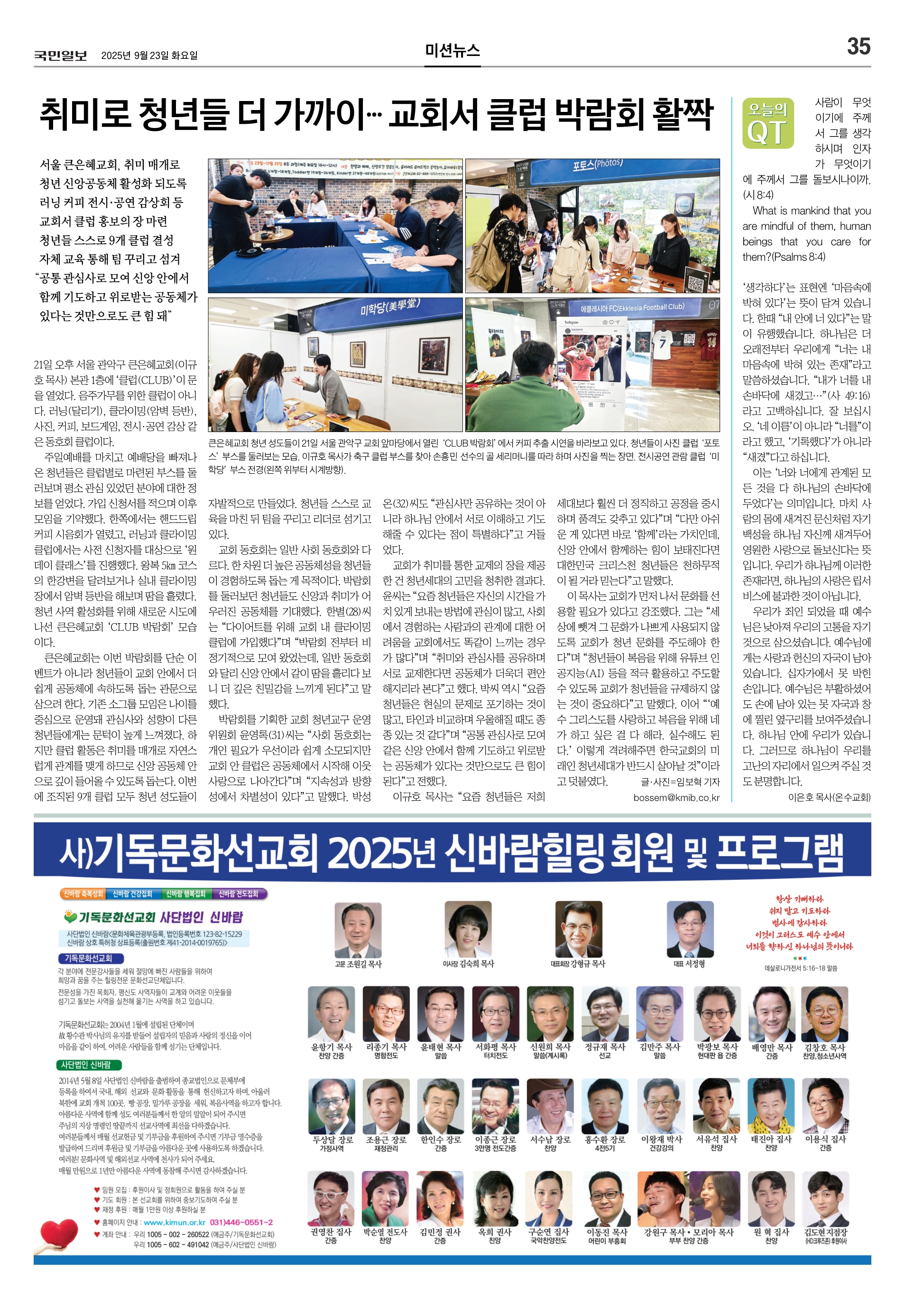 교계의 영적 회복을 위한 마중물 역할과 디딤돌 사명을 다하자