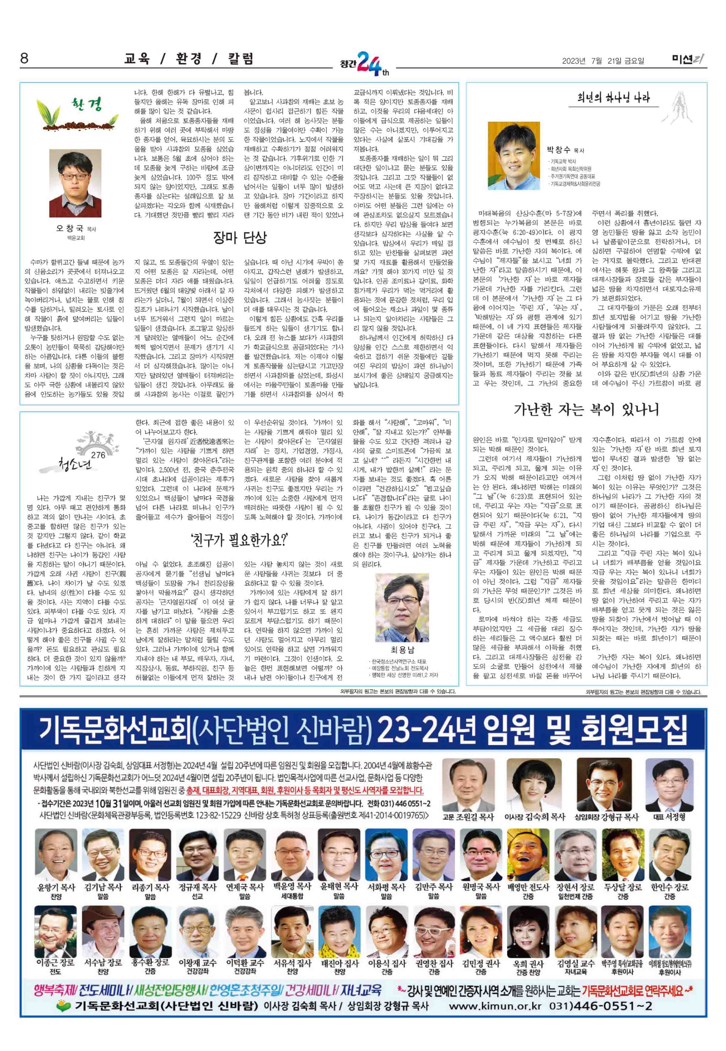 주님! 대한민국을 긍휼이 여겨 주옵소서. 불특정 다수인들의 잘못된 생각과 판단으로, 지금 이 나라가 위험에 빠져 있습니다. 전혀 상대방을 알지도 못하는, 사람들을 향한 일들로 인하여, 목숨을 읽고, 상처로 인하여 자괴감과 슬픔에 잠긴 사람들을 위로하여 주옵소서. 전국 곳곳에서 무차별적인 묻지마 흉기난동이 일어나고 있습니다. 지금 모든 사람들이 불안과 공포에 사로잡혀 있습니다. 주님! 지금 이러한 시대적 상황에서, 신앙인들이 모두 마음을 함께 하여, 나라와 민족, 이웃들을 향한 , 중보기도로 함께 이 어려움을 잘 극복 할 수 있는, 담대한 마음을 주옵소서. 주님! 지금 이나라는 태풍과 재난으로 인하여, 슬픔에 잠겨있는 이웃들이 많이 있습니다. 이 들을 위로 하여 주옵소서, 지금 지구 온난화로 인하여, 전세..