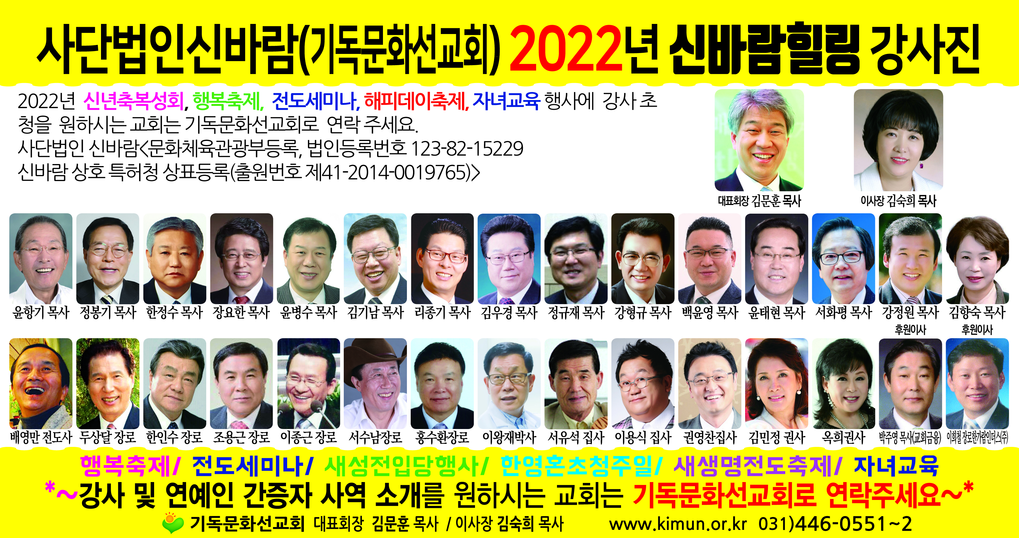 대한예수교장로회(예장) 통합 전국장로회연합회(회장 류재돈 장로)는 다음 달 21~22일 강원 원주시 명성수양관에서 ‘제15회 엘더스쿨’를 개최한다. 김삼환 명성교회 원로목사와 유철호 서포교회 목사가 설교 말씀을 전한다. 강의는 이종삼 갈릴리교회 목사와 임현수 캐나기 큰교회 원로목사가 맡는다. 복싱 선수 출신 홍수환(사진 오른쪽) 장로, 탤런트 김민정(왼쪽) 권사가 간증한다. 행사는 기독문화선교회(대표회장 김문훈 목사·이사장 김숙희 목사)가 협력하고 있다. 기독문화선교회 서정형 대표는 “유명 목회자와 연예인, 전문강사 초청 신바람 힐링 프로그램을 준비하고 있다”며 “집회는 비기독교인도 거부감 없이 기독교에 관심을 갖도록 해 새로운 전도 대안, 부흥 동력이라는 평가를 받고 있다”고 밝혔다. 유영대 종교기획위원